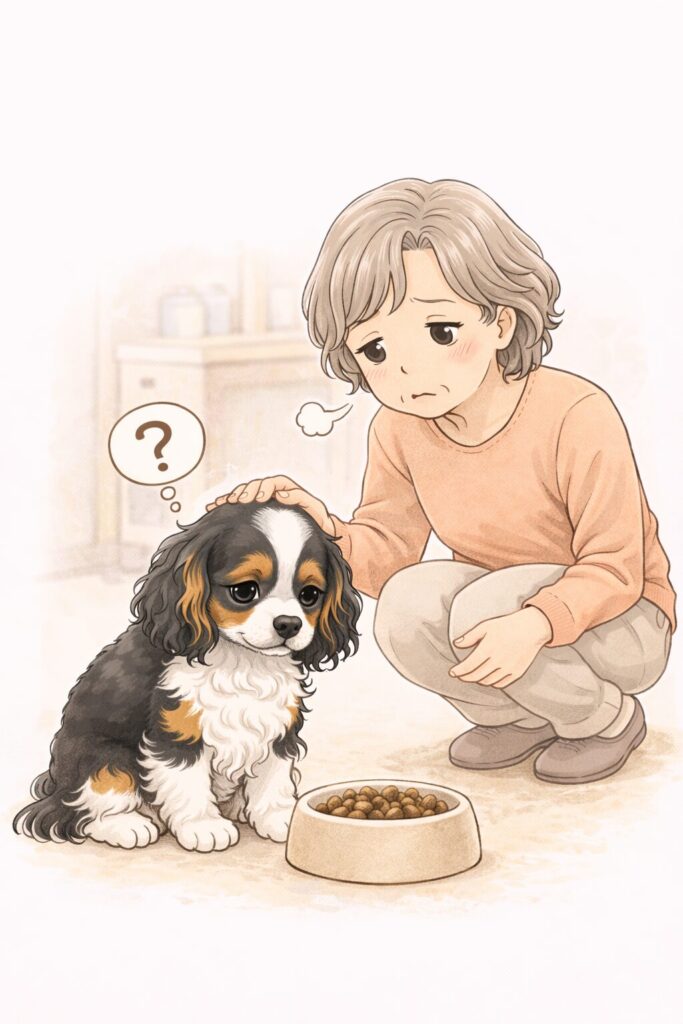 食いしん坊のキャバリアは、いつもはあっという間にフードを平らげて、